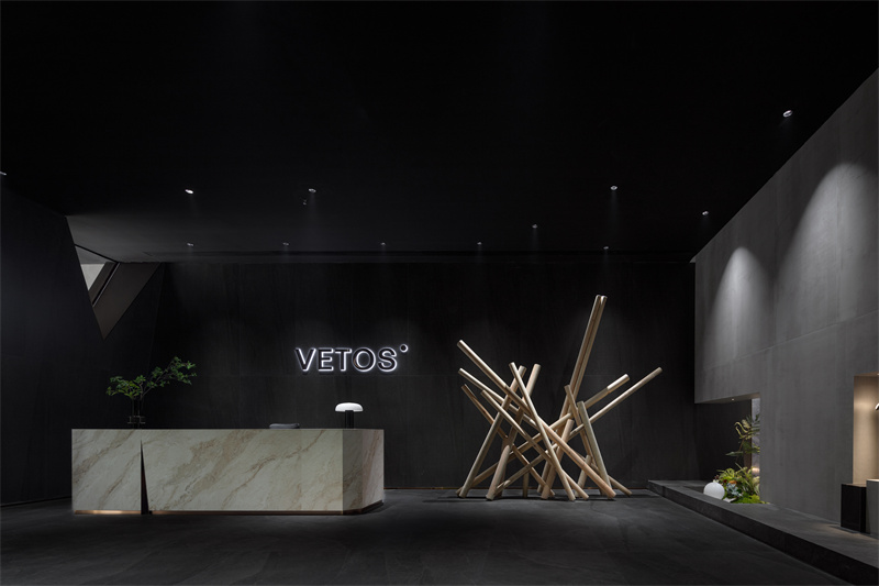 他闡釋道,展廳大膽運用暗色基調,讓產品成為空間的主角。同時,將品牌LOGO中的“V”符號解構為視覺韻律,營造出豐富的層次與動態張力。