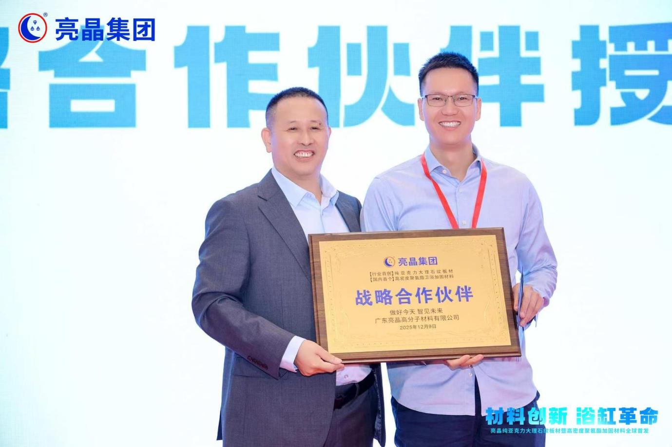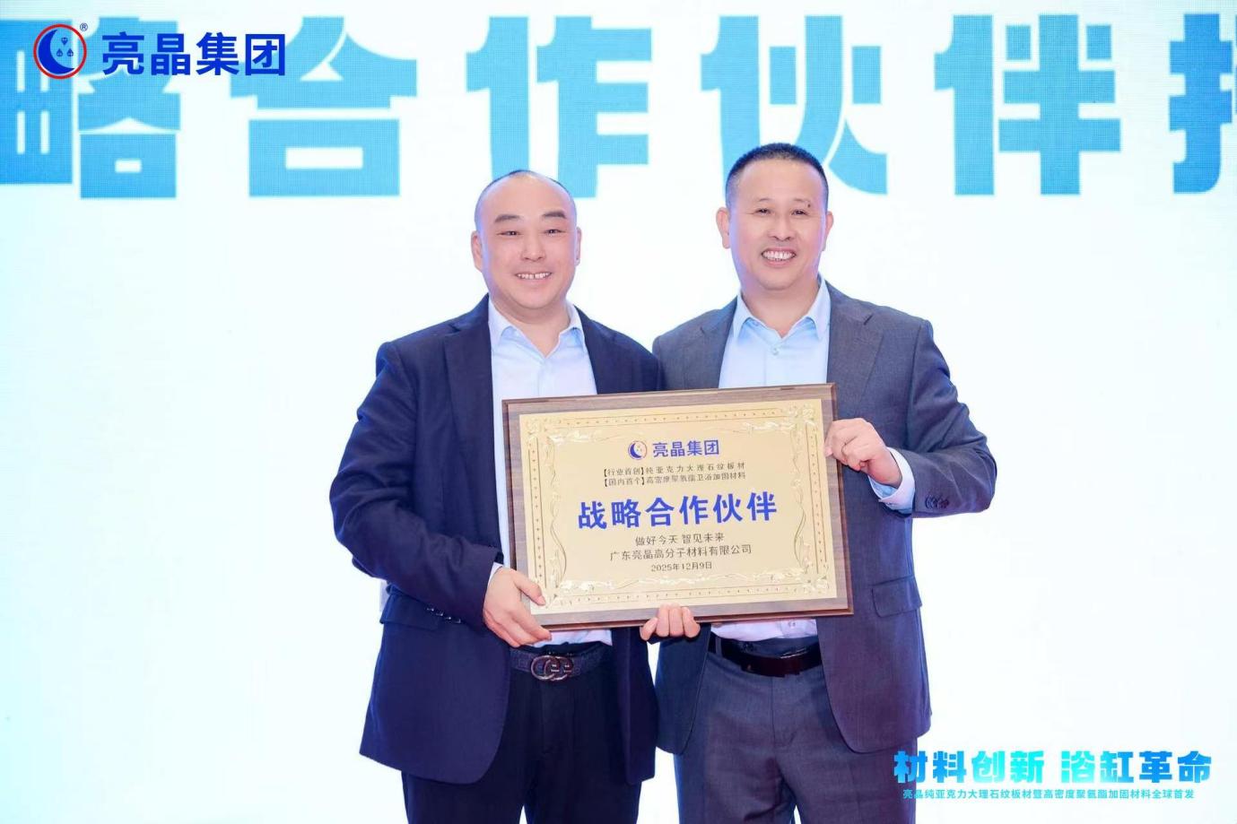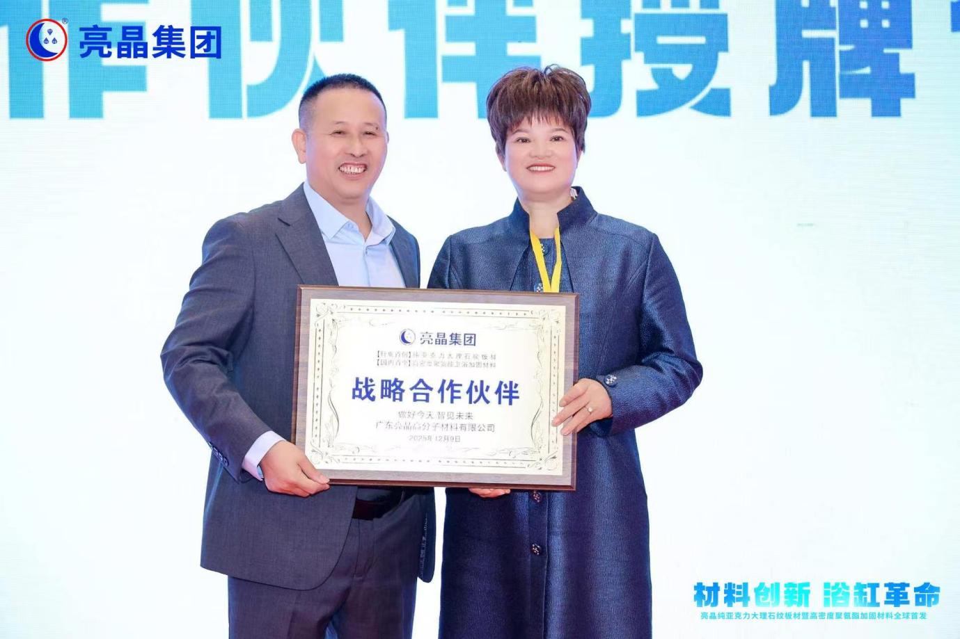 最后,活動在授牌儀式后順利落下帷幕。亮晶董事長為戰略合作伙伴頒發的牌匾,既是攜手共進的承諾,也是助力企業破除內卷,開辟市場新藍海的一把鑰匙。未來,亮晶將繼續以技術創新為核心驅動力,推出更多滿足行業轉型升級需求的創新產品,與全球合作伙伴攜手,共同推動衛浴行業向高品質、綠色化方向發展!