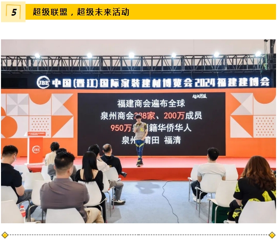 歷經六年積淀,福建建博會進一步提格、破圈、擴容,以全新姿態閃亮登場,展覽范圍擴展至家居建材全領域,各大品牌新品薈萃、多元化產品一站集聚,是福建首個建材全產業鏈會展平臺。展會以“隱形冠軍齊聚、共推產業發展”為主題,展覽面積3萬平米,精心打造一系列精品特展、論壇活動,匯聚專精特新和隱形冠軍企業,還輻射帶動了惠安石雕、安溪藤鐵家具、德化陶瓷、泉州木雕、五金門窗、永安竹木、莆田木質家具、機械裝備、原輔材料等眾多產業帶,權威機構、前沿專家大咖云集晉江,共話前沿動態,共享創新成果。